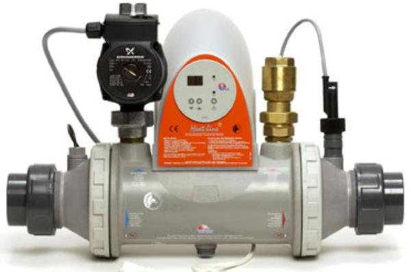 Scambiatori di calore ad alte prestazioni (recupero delle calorie pari al 90%) realizzati con placche nervate di Titanio che possono essere utilizzati con tutti i tipi di caldaia. Concepiti per qualsiasi piscina installata sia all’interno che all’esterno. Possono funzionare sia con primario ad alta temperatura (90°C/70°C) che a bassa temperatura (45/35°C). Scambiatori insensibili alla corrosione, grazie all’impiego del Titanio (possono essere utilizzati anche con i sistemi di elettrolisi e con l’acqua di mare). Di facile installazione sono equipaggiati di quadro elettrico di comando e protezione completo, circolatore del primario. Gli apparecchi sono pre-cablati, dotati di un termostato di regolazione digitale che permette di visualizzare la temperatura dell’acqua della piscina su un display e di flussometro di sicurezza.